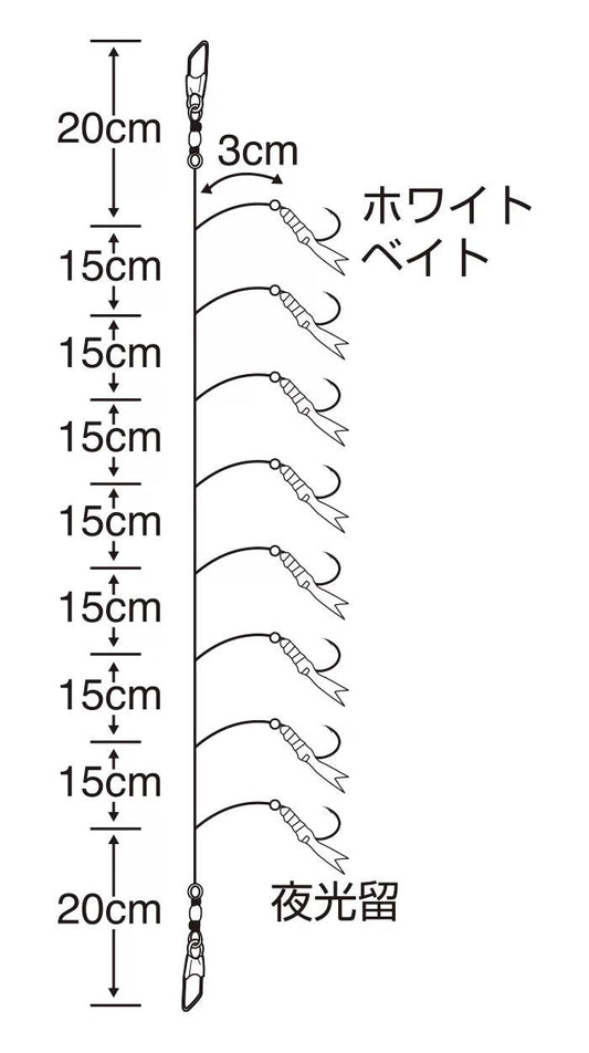 豆アジサビキ ホワイトベイト 2号 ハリス0.6 8本鈎×1セット