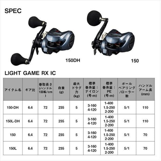 ライトゲームRX IC 150L 左巻き 両軸リール