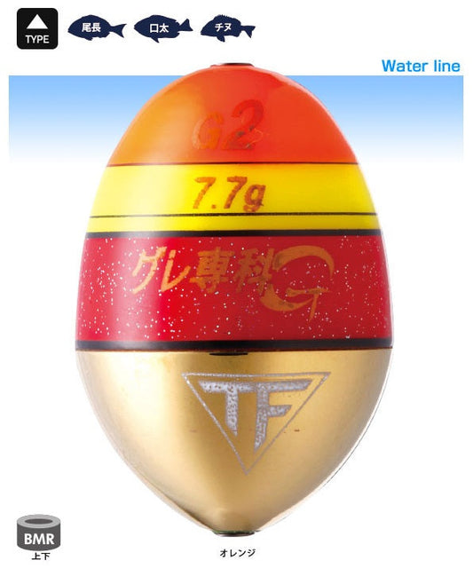 【アウトレット】グレ専科G オレンジ 2B 中通しウキ