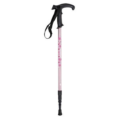 トレッキングステッキTグリップ 3段スライド式 ピンクフラワー