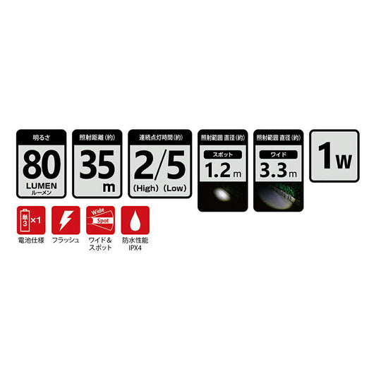 雷神 アルミパワーチップ型LEDライト 1W-80メルーン