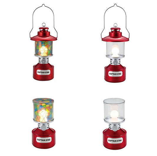 ツインライト LEDランタン ステンドグラス風シート付 レッド