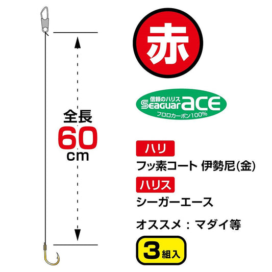 I-4R 釣堀 誘いショート 赤 ハリ9号 ハリス3号 3組入