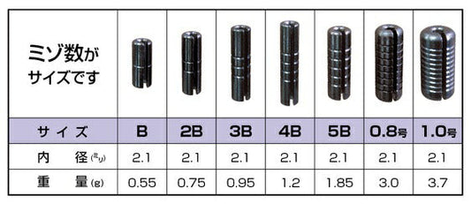ラバー・スティック・シンカー 2B φ2.1mm 0.75g 5ヶ入