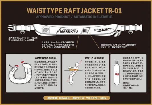ウエストタイプラフトジャケット 型式承認品TR-01 ブラック ウエスト70~100cm/100kg以下