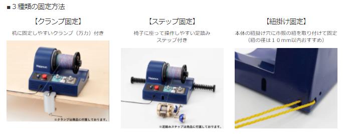 ・固定方法はクランプ固定、足踏み固定、紐固定の3種類対応