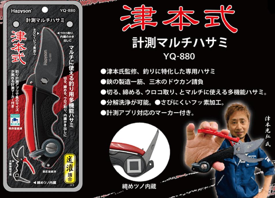 【ハピソン YQ-880 計測マルチハサミ 185×60×22mm 190g 津本式 多機能 魚締め ウロコ取り フッ素加工 分解洗浄 海釣り 釣具】