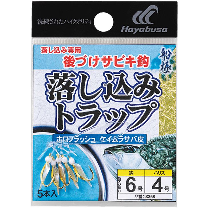 【ハヤブサ IS358-6-4 船極 サビキ鈎 落し込みトラップ ホロフラッシュ ケイムラサバ皮 鈎6号/ハリス4号 5個入 仕掛け ハリ 針 船 海釣り 釣具 つり Hayabusa】