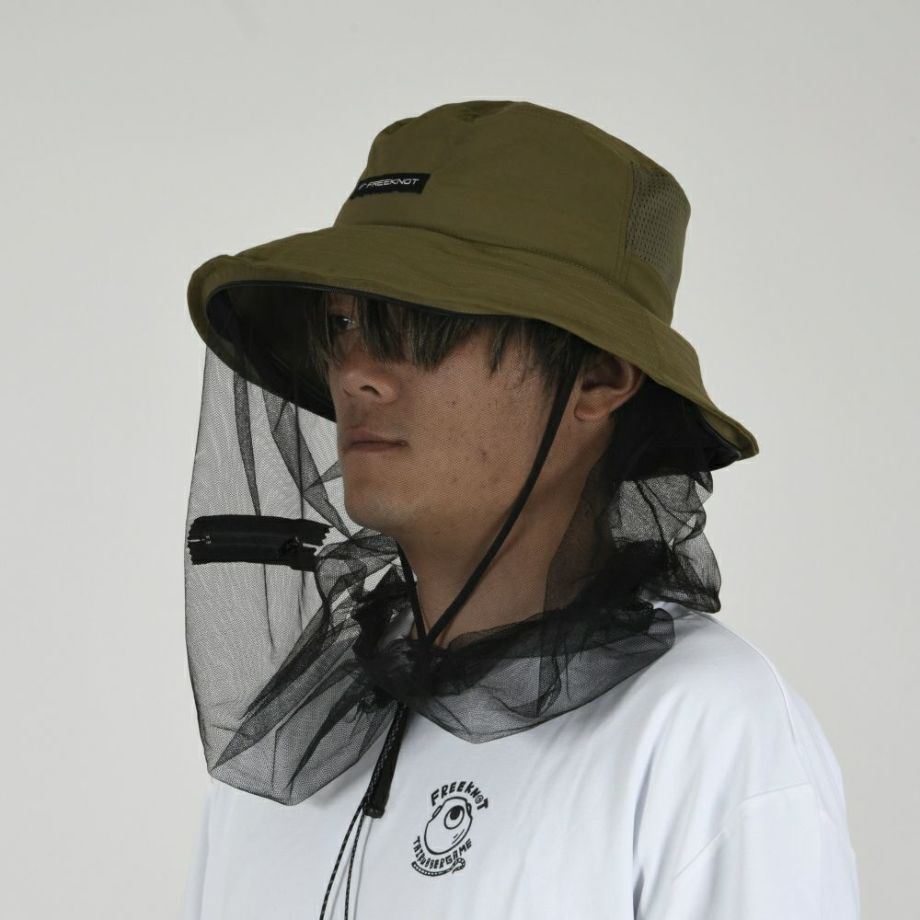 顔回りを不快な虫から守る防虫ネット付きハット。
