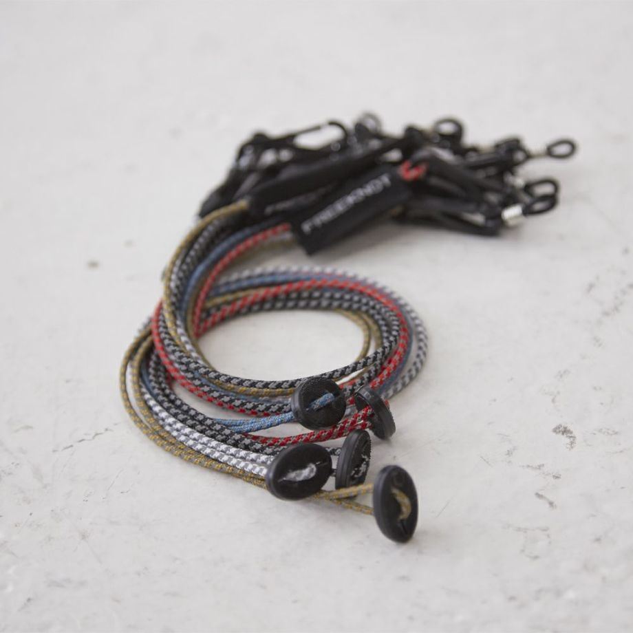 帽子のアゴ紐やサングラスに装着可能な2wayストラップ。