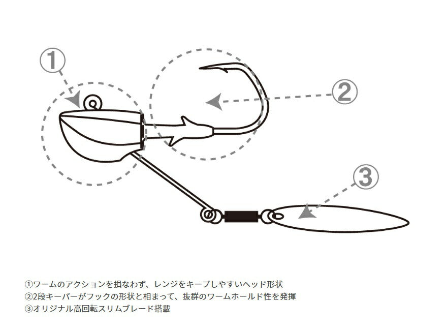・ワームが刺しやすくズレにくいキーパーとフックを採用。