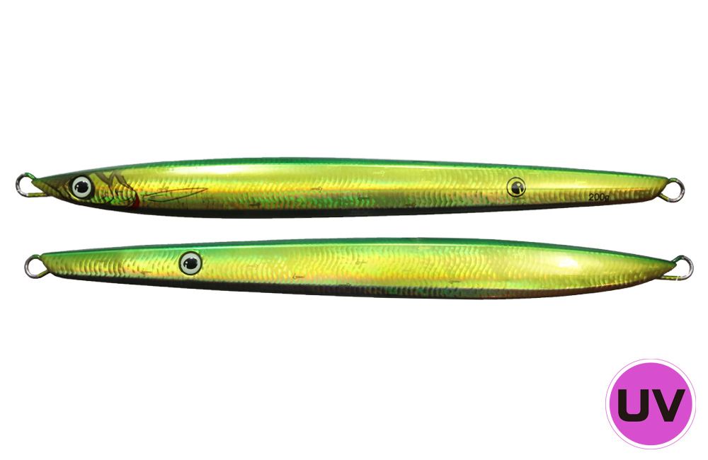 【一誠 海太郎 ネコメタルロング #053/UVグリーンゴールド 200g ジグ ジギング ルアー 疑似餌 釣具 つり フィッシング issei】