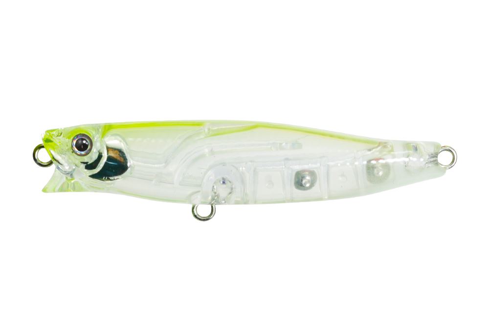 ペンシルベイトとポッパーの特徴を合わせ持つSWライトゲーム用トップウォータープラグ。