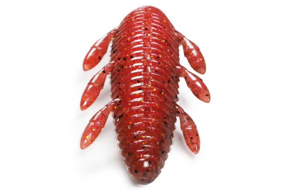 万能ロックフィッシュワーム『根魚蟲』がヘビーソルトモデルとして登場! 『根魚玉』とのセット、テキサスリグなどに用いてリフト&フォールさせればまるで太い尾を持つ生物が尾を振り回すような動きで波動を生み、タダ巻きすれば太いボディがふわふわと水を押し、3対の脚がピリピリと動いて微波動を生み出します。クイックなアクションでもスローなアクションでも、タダ巻きでも根魚を魅了します。比重を高めたことにより海水への親和性が高まりこれまで以上のナチュラルなアクションを実現。高い食わせ力を誇ります。
