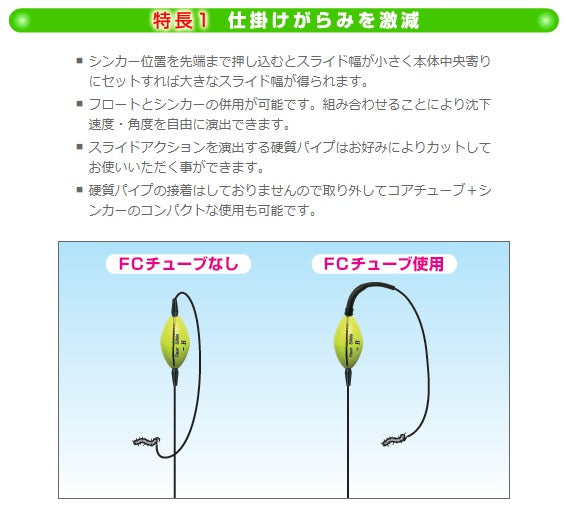 ・フロートとシンカーの併用が可能です。組み合わせることにより沈下速度・角度を自由に演出できます。