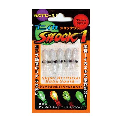 【ルミカ プニイカ ショックワン(SHOCK1) 35mm クリアホワイトUV 5個入 ルアー ワーム 疑似餌 イカエキス配合 釣具 つり フィッシング LUMICA】