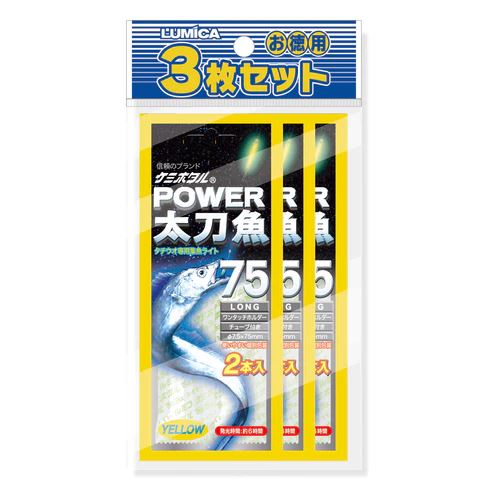 【ルミカ パワー太刀魚 ロング75 φ7.5×75mm イエロー 2本入×3枚セット ケミホタル 集魚ライト 大光量 電気 タチウオ 夜釣り 釣具 つり フィッシング LUMICA】