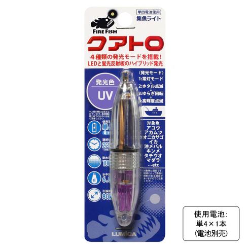 【ルミカ FIRE FISH クアトロ φ20×101mm UV LED集魚ライト 水中ライト 電気 夜釣り 釣具 つり フィッシング LUMICA】