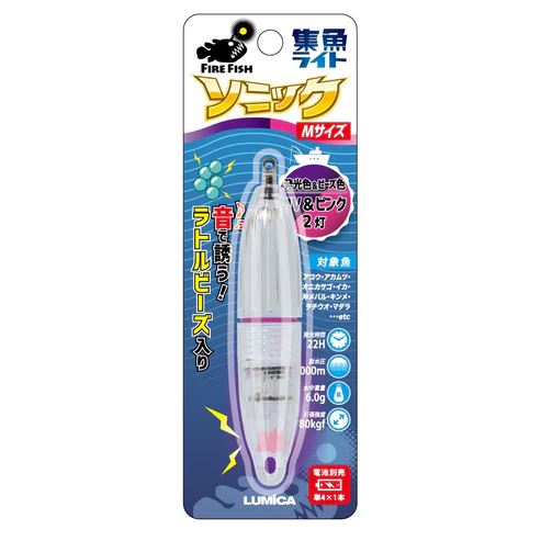 【ルミカ 水中集魚ライト ソニック M φ20×101mm UV&ピンク 水中ライト 高輝度LED ラトル 電気 夜釣り 釣具 つり フィッシング LUMICA】