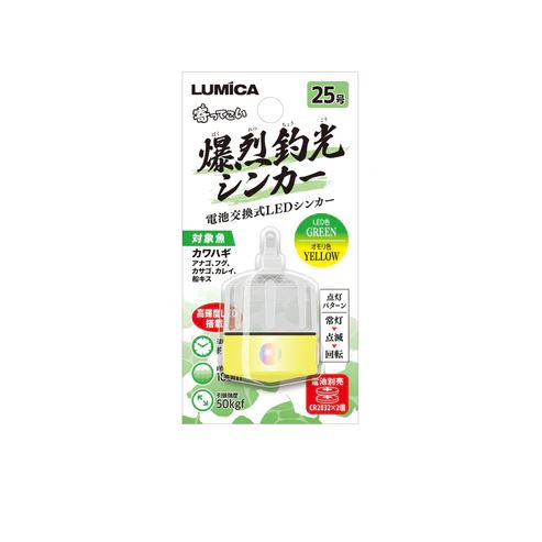 【ルミカ 爆烈釣光シンカー 25号 φ16×79mm イエロー&グリーン おもり オモリ 錘 集魚 高輝度LED 電気 夜釣り 釣具 つり フィッシング LUMICA】
