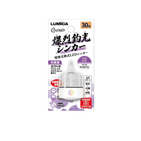 【ルミカ 爆烈釣光シンカー 30号 φ16×79mm ホワイト&UV おもり オモリ 錘 集魚 高輝度LED 電気 夜釣り 釣具 つり フィッシング LUMICA】