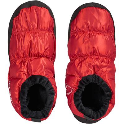 【ノルディスク 109060-red モスダウンシューズ レッド テントシューズ アウトドア キャンプ キャンプ用品】携帯に便利なコンフォートダウンシューズ。気温の低い時期や、テント泊での冷えから足を守る、高品質ダウンを使用したスリッパ。寝袋やテント、山小屋などでのリラックスに最適。(※冬山での使用を想定しているため、厚手の靴下も履けるようゆったりめのサイズ感となっております。)