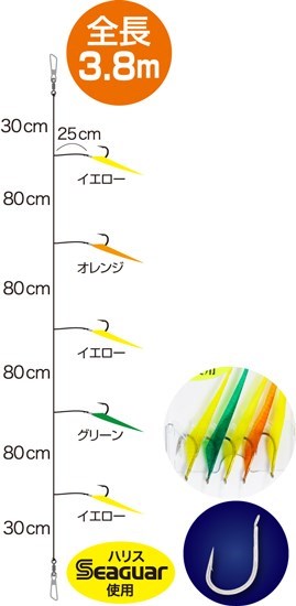 T6342 めっちゃ短い真鯛サビキ シラスイエロー 8号