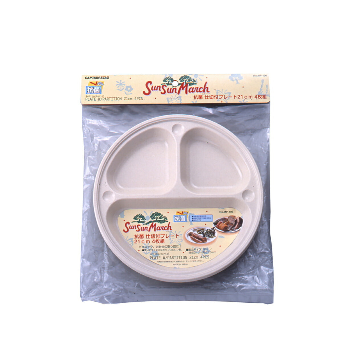 【キャプテンスタッグ MP0106 サンサンマーチ 抗菌仕切付プレート 21cm 4枚入 皿 さら 食器 バーベキュー アウトドア キャンプ MP-0106 MP-106】