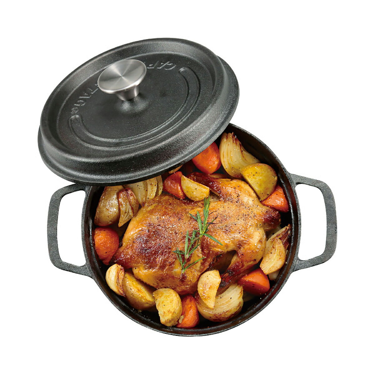 ・鋳物製で均一に熱を伝えるので、オーブン料理に適しています。