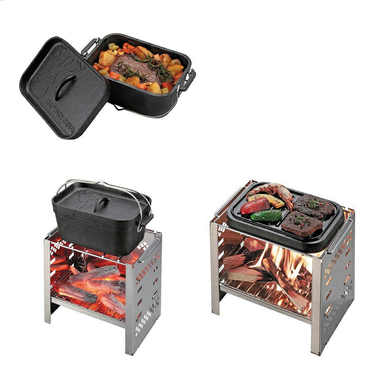 【キャプテンスタッグ UG3063 角型 ダッチオーブン 2.3L 鍋 調理器具 クッカー アウトドア キャンプ UG-3063】