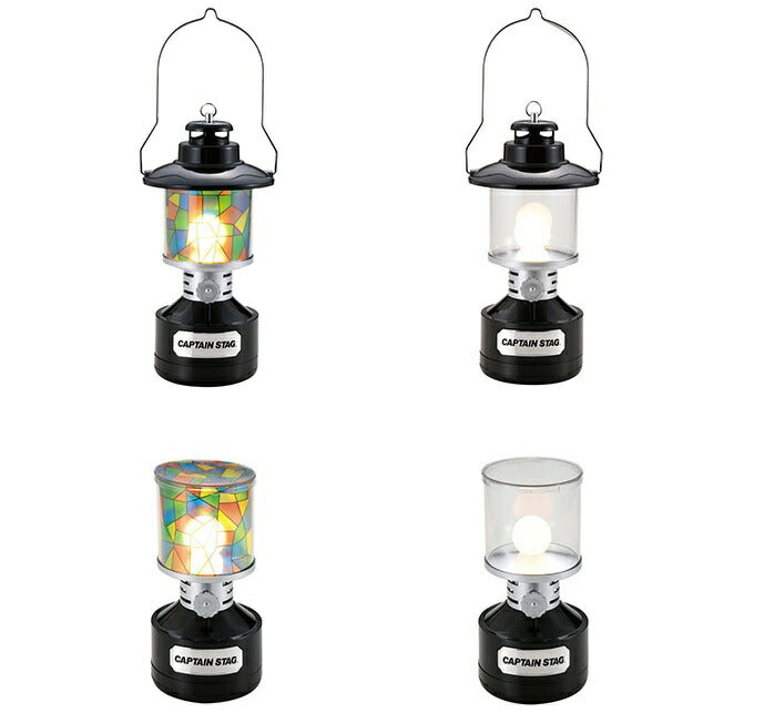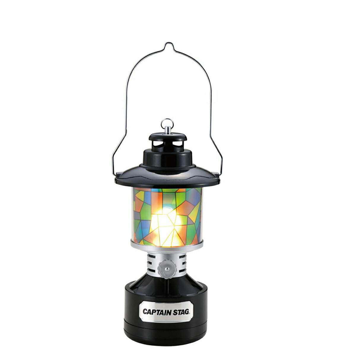 【キャプテンスタッグ UK4033 ツインライト LEDランタン ステンドグラス風シート付 ブラック ライト 電灯 アウトドア キャンプ UK-4033】
