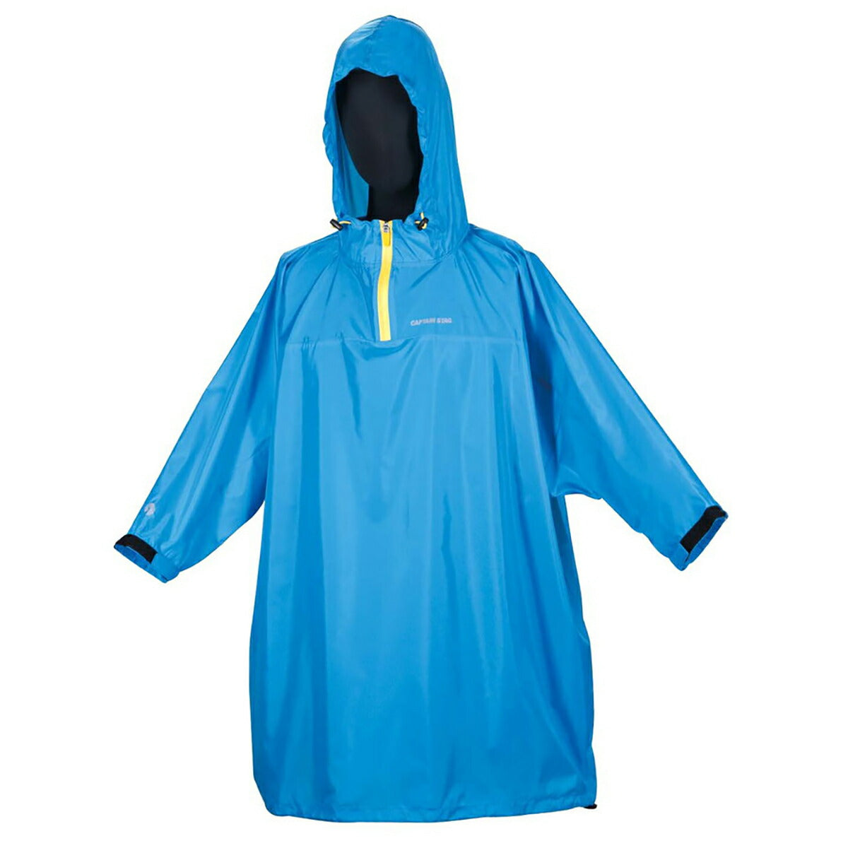 【キャプテンスタッグ UX2528 レインポンチョ 収納ケース付 ジュニア ブルー JLサイズ カッパ 合羽 通勤通学 超撥水加工 アウトドア キャンプ UX-2528】