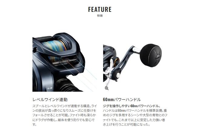 新たにHAGANEボディ、Xプロテクトの採用で剛性感とタフネスを向上させると同時に、60mmパワーハンドルを搭載してパワフルな巻き上げをサポート。