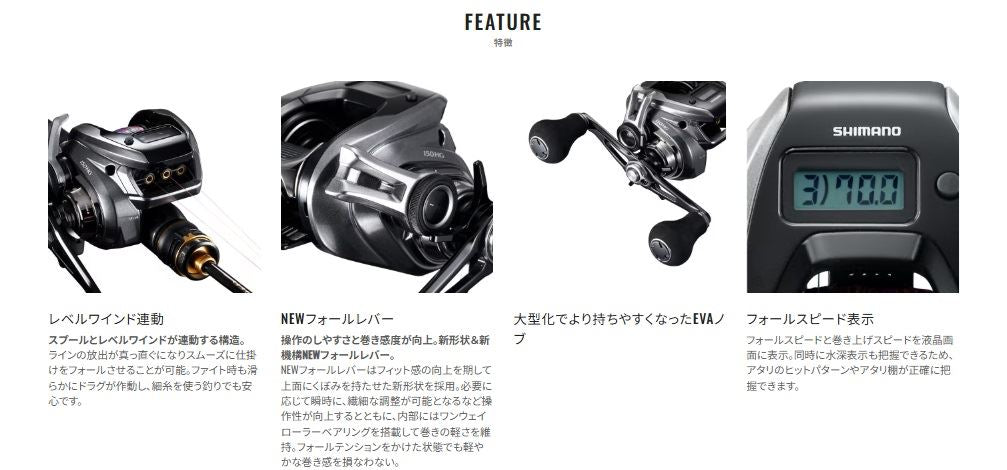 設定距離の倍数で3回まで音が鳴り、カウンターを見ずとも音でタナがわかる巻き上げ距離アラームや視認性を高めたカウンターの視野角により情報伝達性も向上。