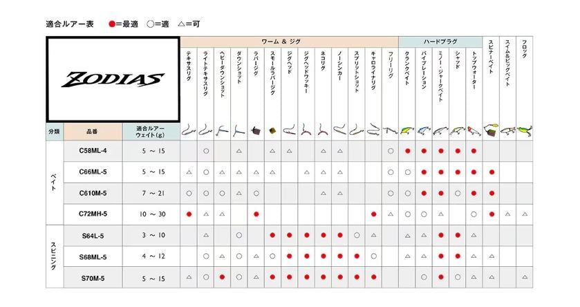 ※ゾディアス(パックロッド)は北米先行発売の逆輸入モデルです。本モデルは国内仕様とは品番表記などで異なる点がございます。