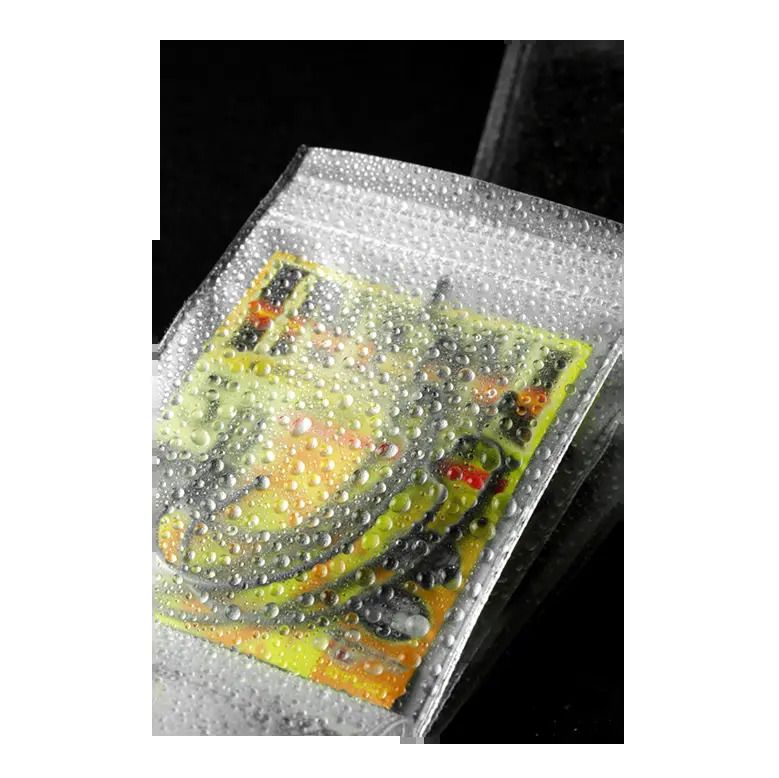 ・フックなど付属台紙ごと収納できる簡易防水機能付きジッパーバッグ。